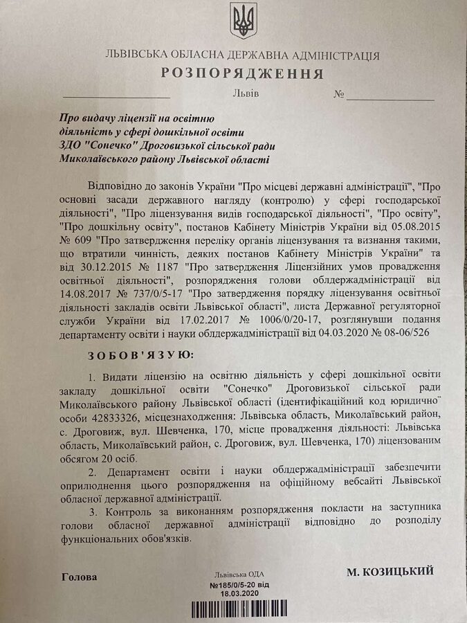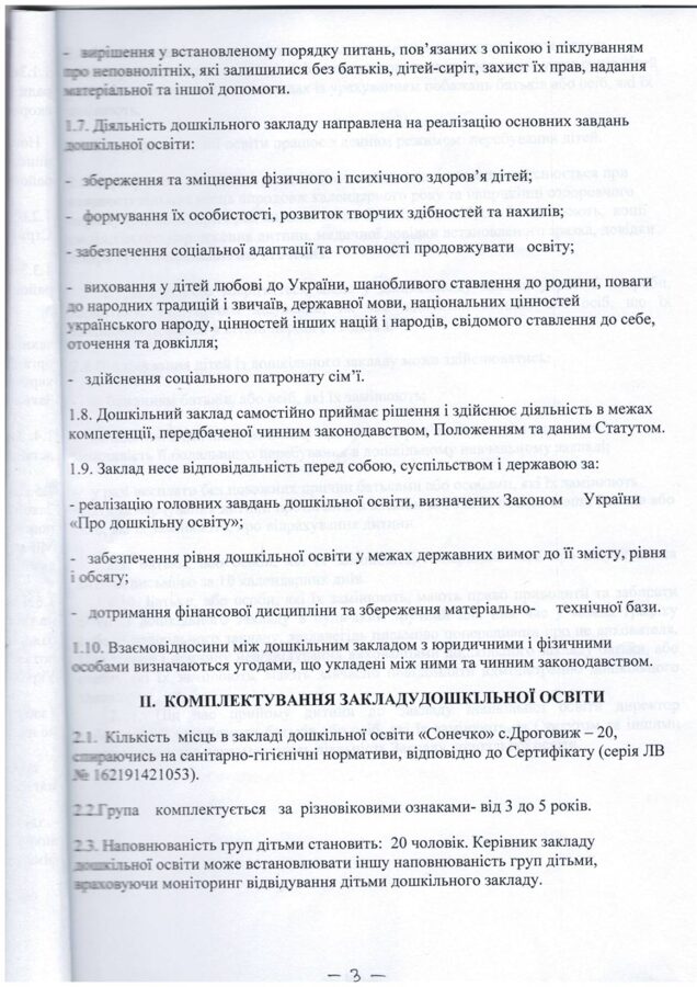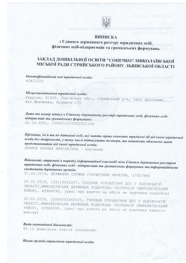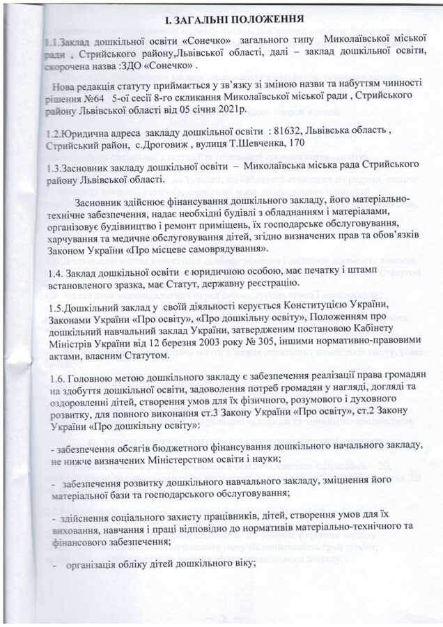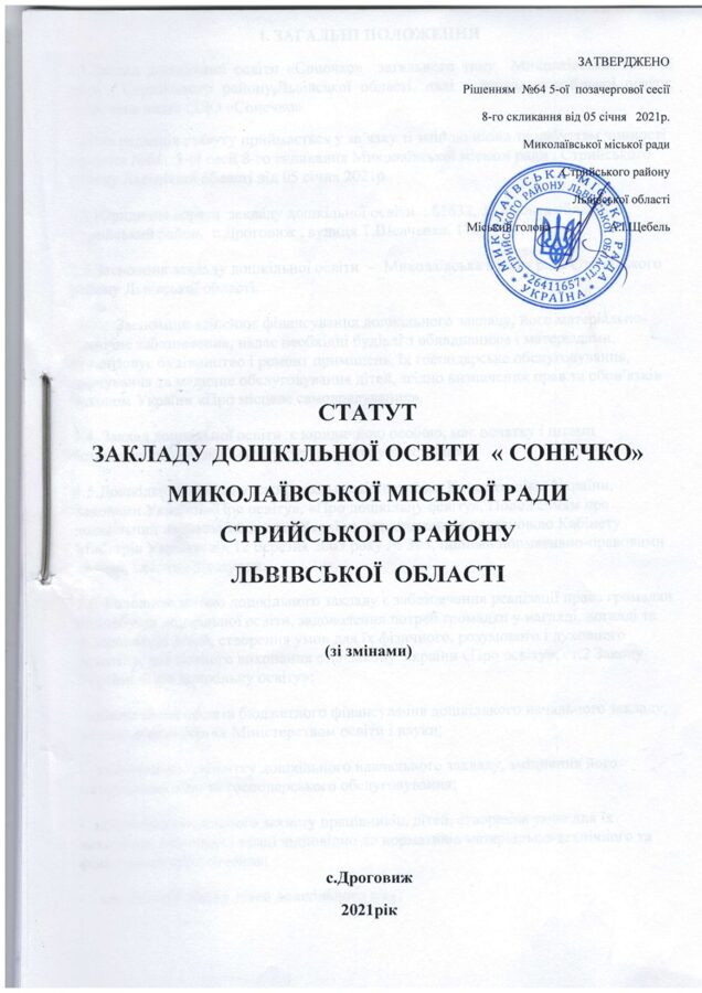 ЗАКЛАД ДОШКІЛЬНОЇ ОСВІТИ "СОНЕЧКО" МИКОЛАЇВСЬКОЇ МІСЬКОЇ РАДИ СТРИЙСЬКОГО РАЙОНУ